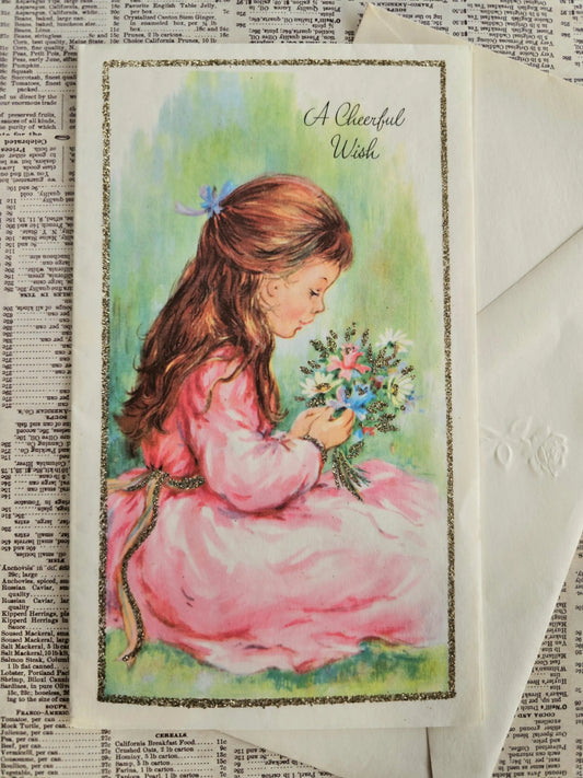 "A Cheerful Wish" Vintage Greeting Card and Envelope