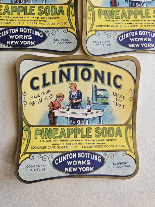 Set of 5 - Retro Clintonic Pineapple Soda Labels