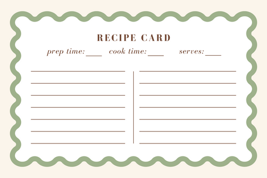 Retro Green Blank Handmade Recipe Cards - Set of 10