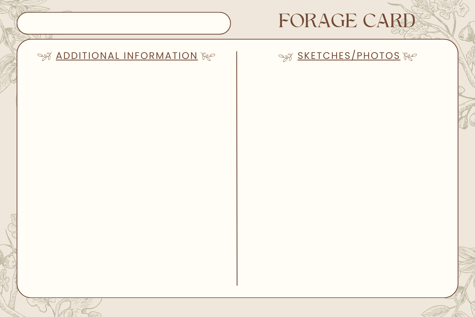 - Two designs to allow for plenty of space to write down information for each foraged or collected plant.