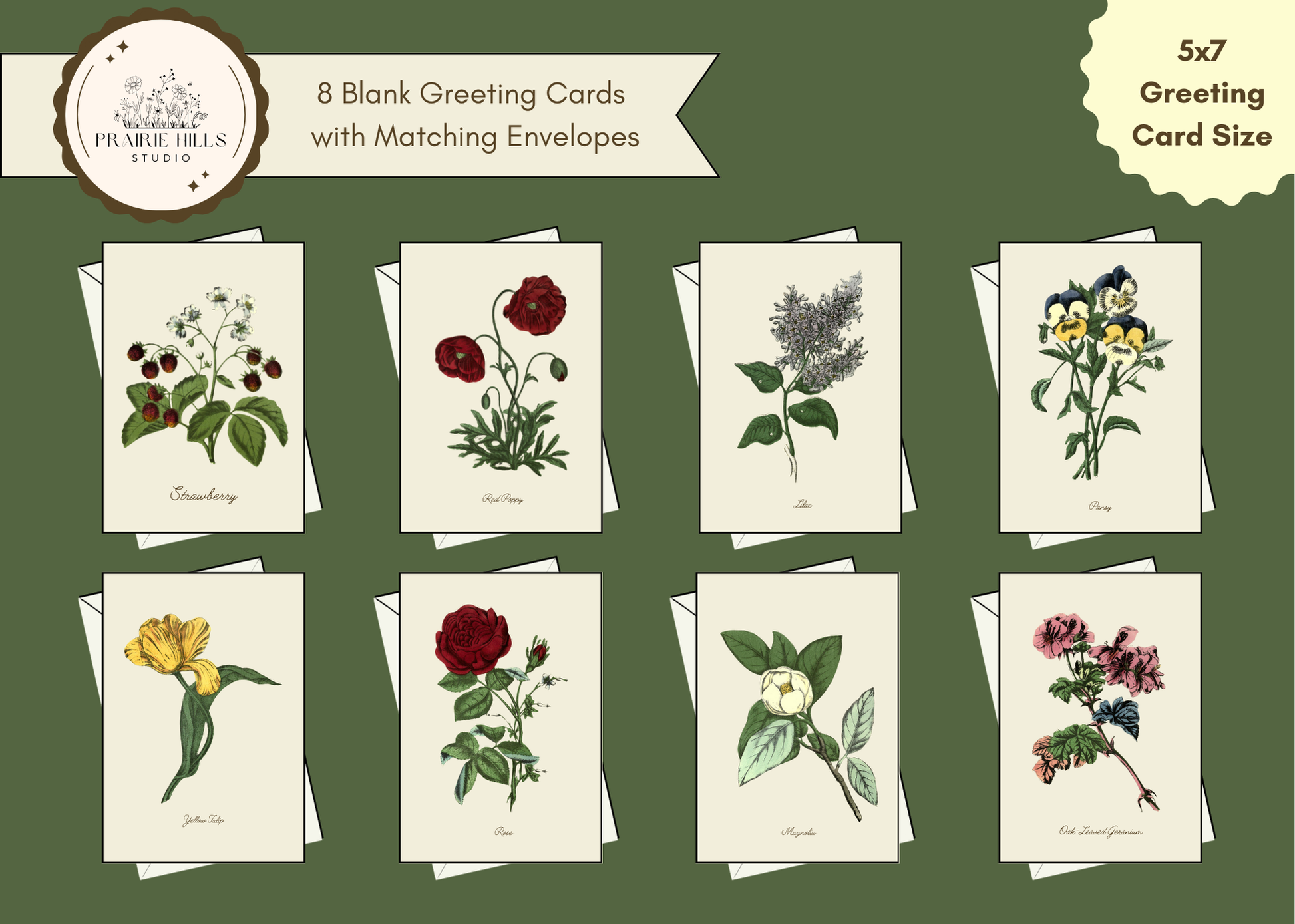 During the Victorian era, flowers carried secret meanings and were often used to express feelings that words could not. Known as the “Language of Flowers” or floriography, each bloom symbolized a message — from love and friendship to remembrance and joy. This greeting card set celebrates that timeless tradition, featuring eight unique floral designs paired with their Victorian meanings, making every note you send a little more thoughtful and meaningful.