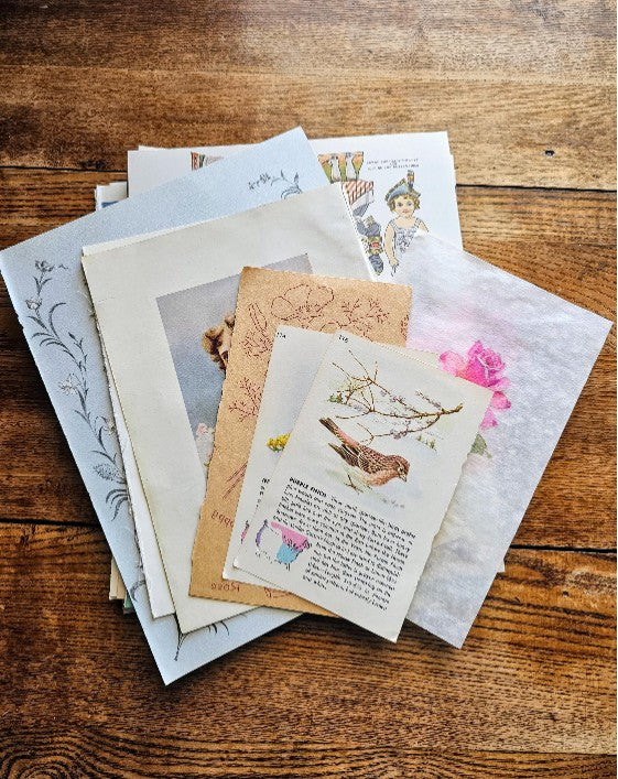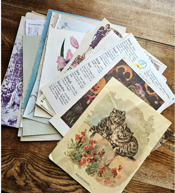 Discover a treasure trove of vintage and curated paper with this 100-page ephemera pack, perfect for junk journaling, scrapbooking, art journaling, collages, mixed media projects, and more. Each pack is randomly selected from my personal collection of thousands of pages, ensuring every order is unique. While most of the pages are vintage, some newer selections with beautiful illustrations or photography may be included, covering themes like flowers, fashion, nature, and more. Some pages are antique, dating back as far as the 1800s.